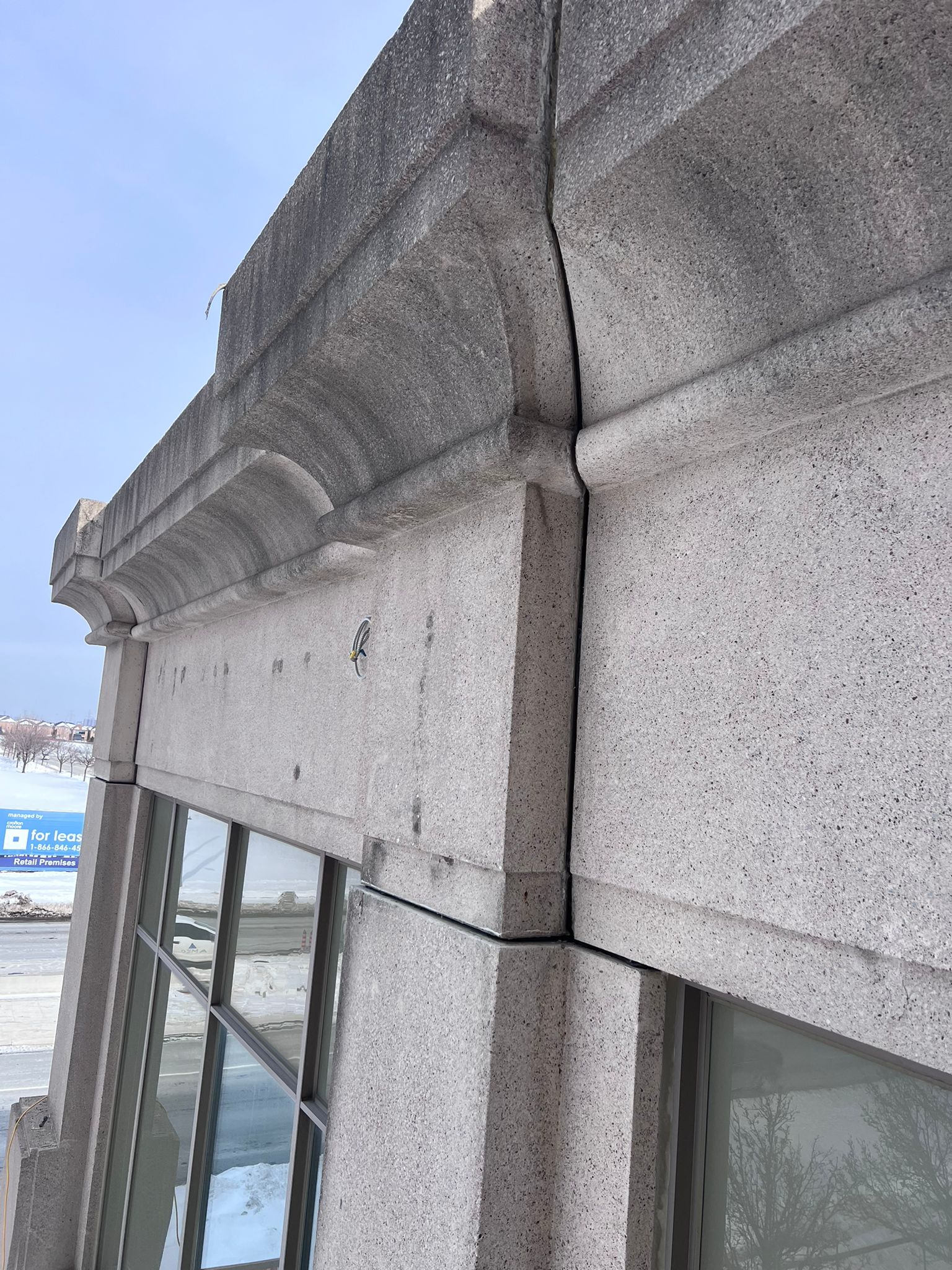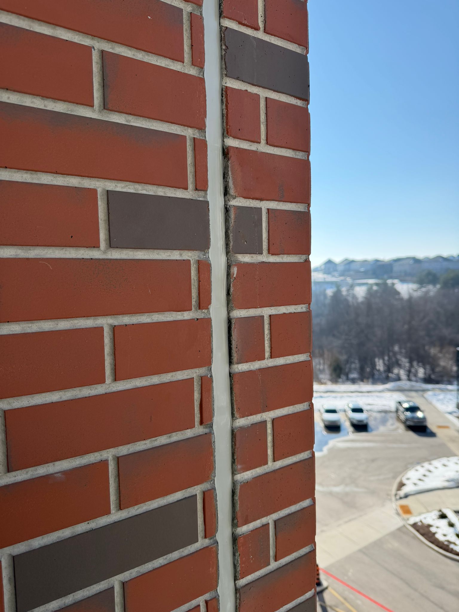 Exterior joint sealing and structural gap repairs on an industrial facility. Surfaces were prepared and high performance sealants were applied in exposed building conditions to improve durability and weather resistance.